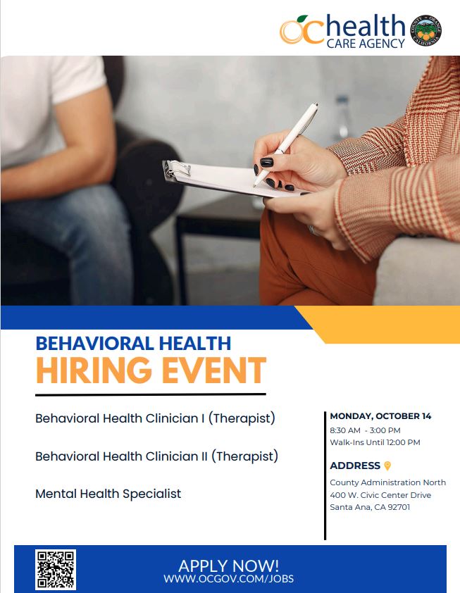 October 14th - Behavioral Health Services Hiring Event:
