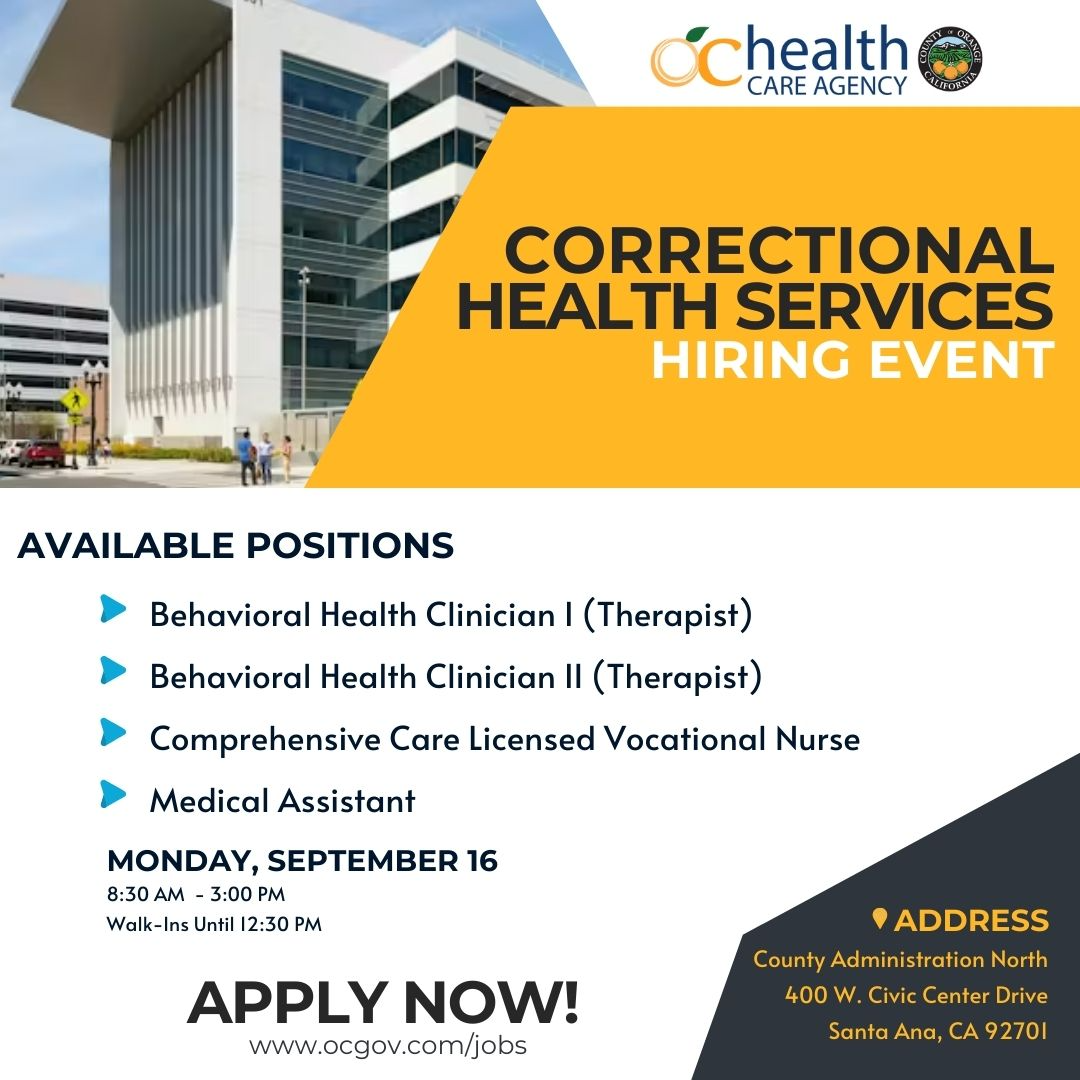 September 16th - Correctional Health Services Hiring Event: