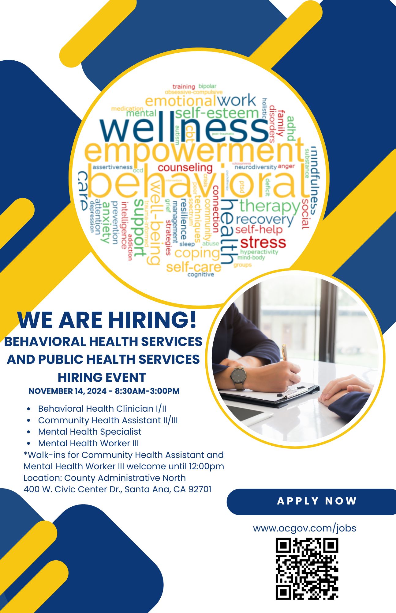 November 14, 2024 - Behavioral Health Services and Public Health Services Hiring Event